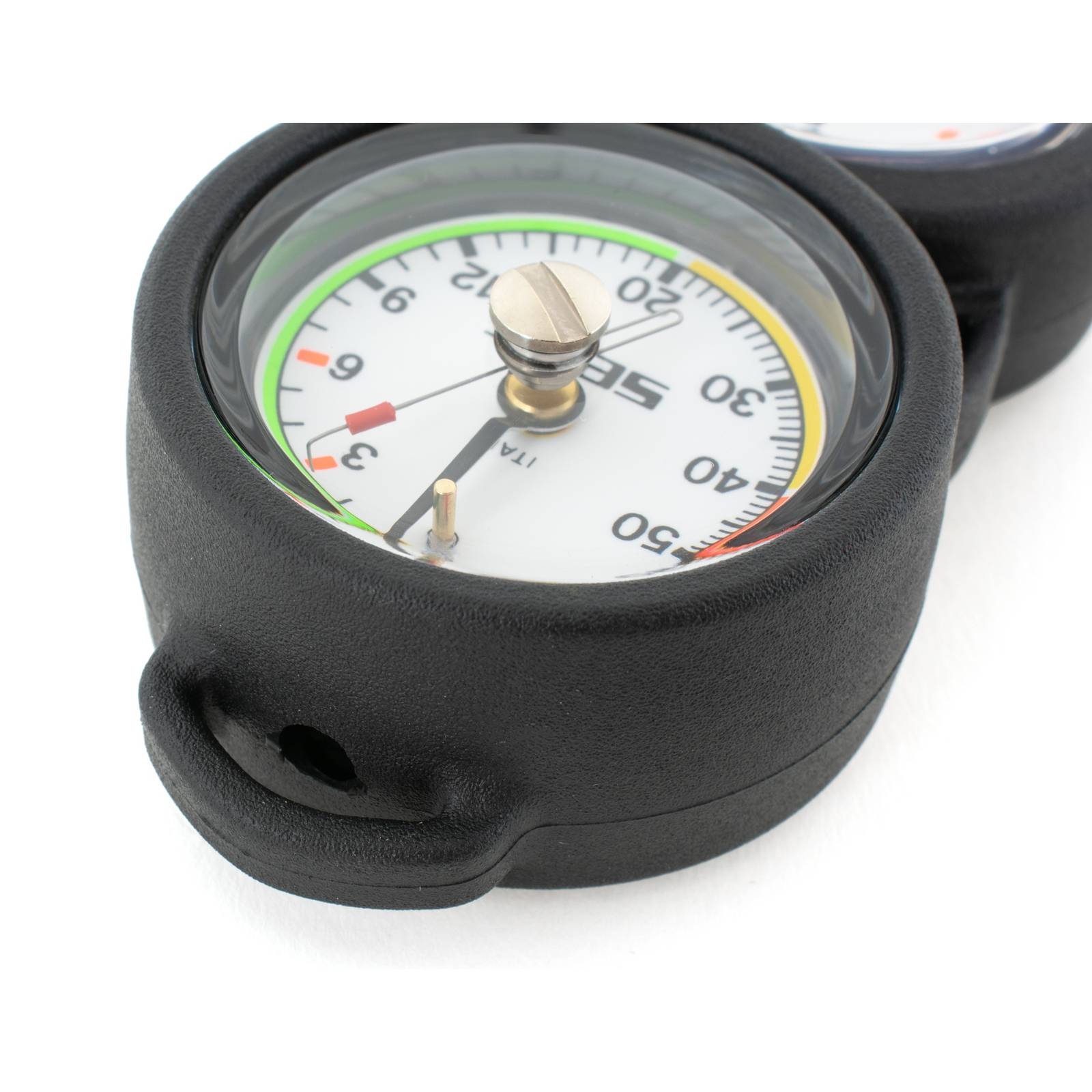 Die Konsole 2 Kompakt Seac 60-11 ist das ideale analoge Messgerät für passionierte Taucher und Unterwasserliebhaber. Ausgestattet mit einem innovativen Bourdon-Manometer im Ölbath, bietet sie exakte Tiefenmessungen bis zu 70 m in präzisen 1 m Inkrementen. Ihr leuchtendes Ziffernblatt sorgt dafür, dass die Lesbarkeit auch bei schlechten Lichtverhältnissen gewährleistet ist. Die robuste Verarbeitung dieser Konsole garantiert eine lange Lebensdauer und hohe Zuverlässigkeit. Mit ihrem kompakten Design ist sie extrem benutzerfreundlich und vereinfacht das Ablesen unter Wasser, wodurch Sie sich voll und ganz auf Ihr Tauchabenteuer konzentrieren können. Ein unverzichtbares Werkzeug für Taucher, das Performance und Effizienz optimal vereint.