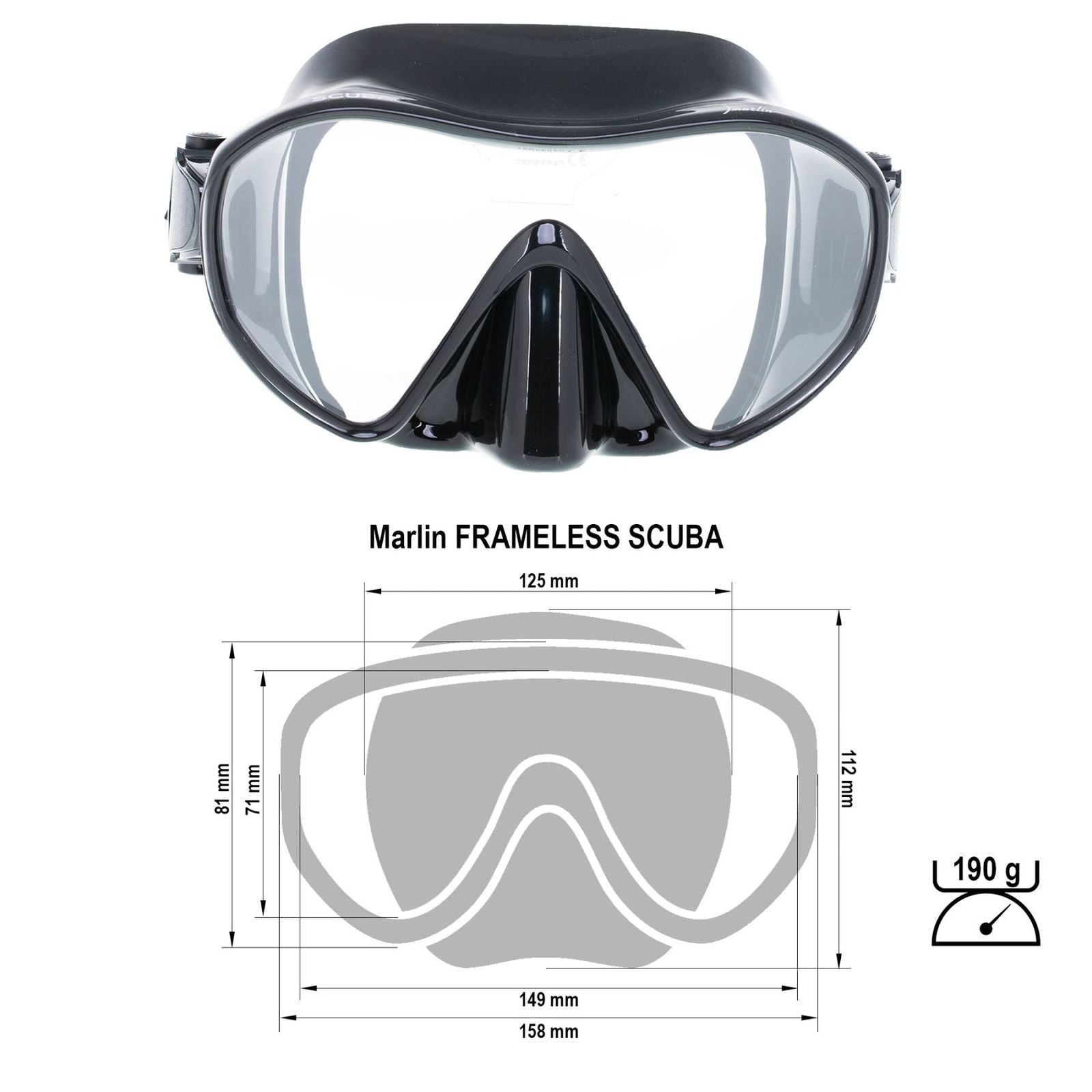 Spearfishing Maske Frameless Scuba Schwarz Marlin 213360