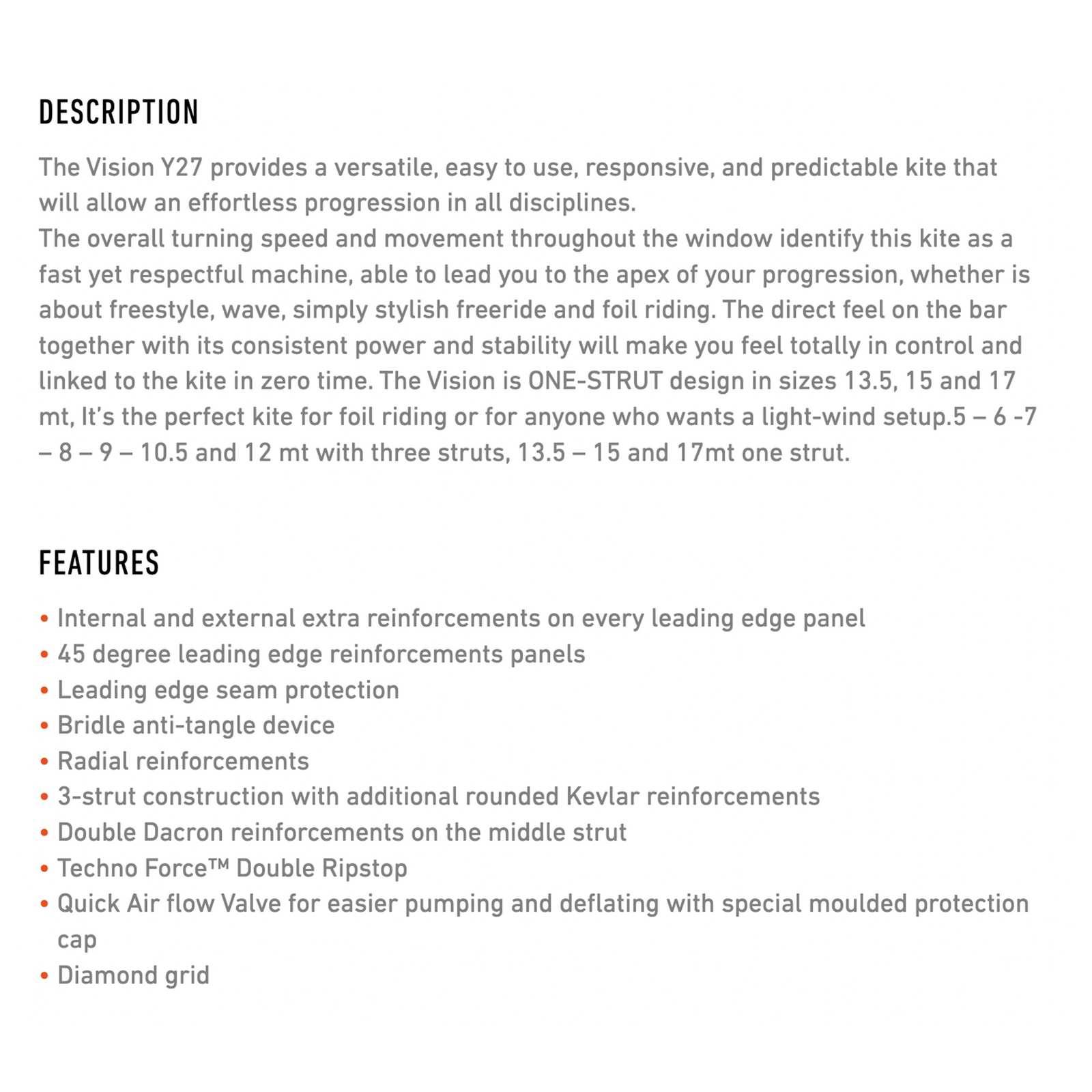 Der Kite Vision in der Größe 9 von RRD ist die ideale Wahl für alle Kitesurfer, die nach einem vielseitigen und benutzerfreundlichen Kite suchen, der in verschiedenen Disziplinen brilliert. Mit seinem ONE-STRUT-Design garantiert dieser Kite ein außergewöhnliches Handling und hohe Leistung, insbesondere beim Foil-Riding oder in leichten Winden. Die Verwendung von Techno Force™ Double Ripstop und mehrfachen Kevlareinlagen sorgt für eine ausgezeichnete Haltbarkeit und Stabilität, während die innovative Konstruktion mit einem speziellen Ventil für ein müheloses Pumpen und Entleeren sorgt. Egal, ob Sie im Freestyle, Wellenreiten oder im stilvollen Freeride aktiv sind, der Kite Vision vermittelt ein direktes Steuergefühl und optimale Kontrolle, sodass Nutzer schnell Fortschritte erzielen können.
