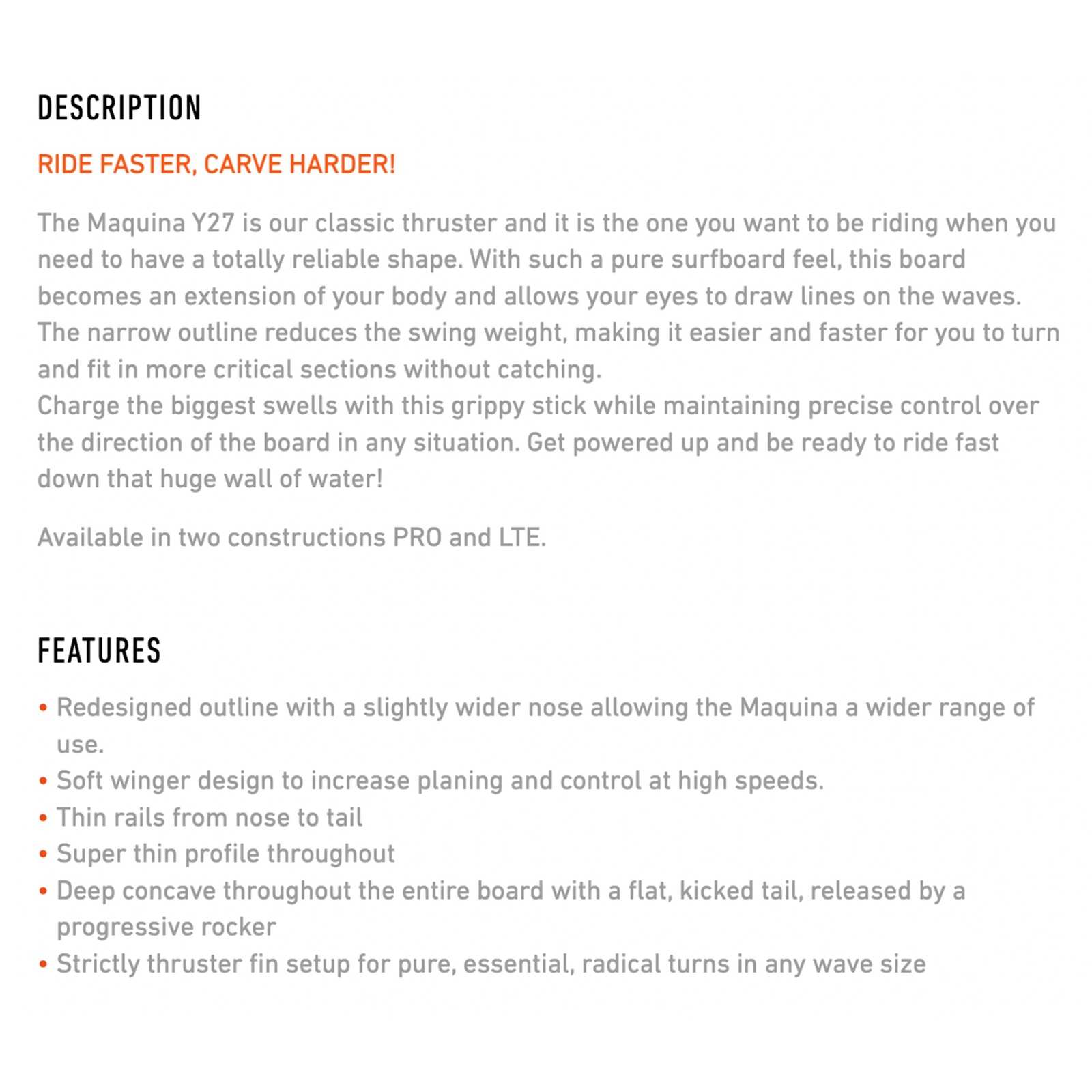 • Strikte Thruster-Finne-Anordnung für präzise, radikale Turns in allen Wellenhöhen